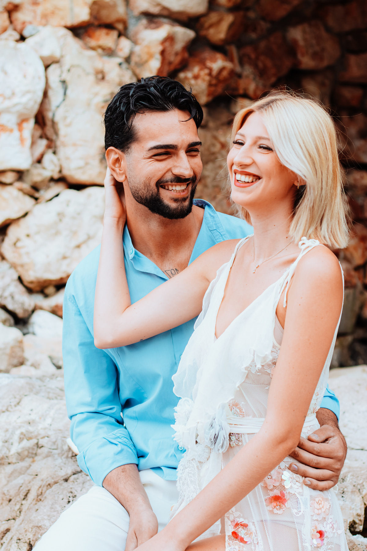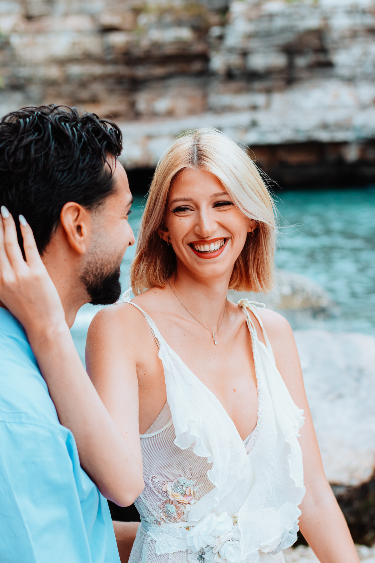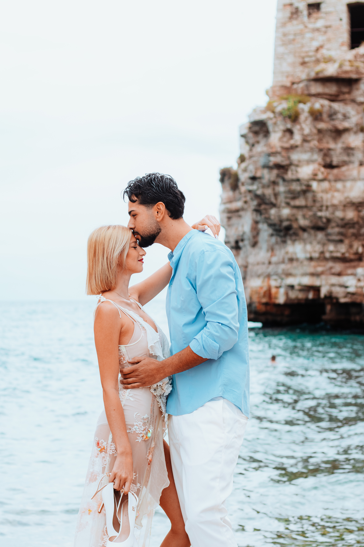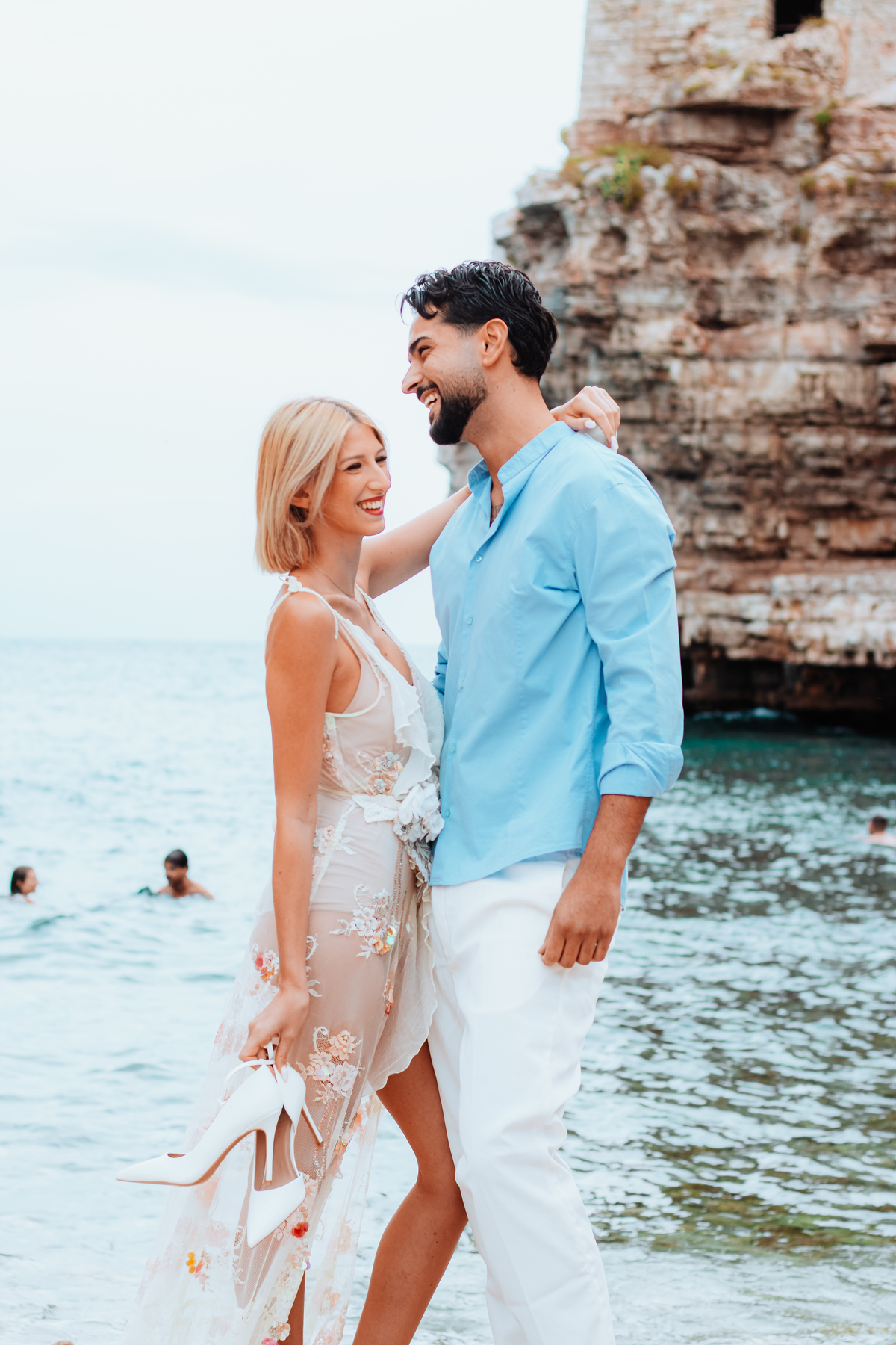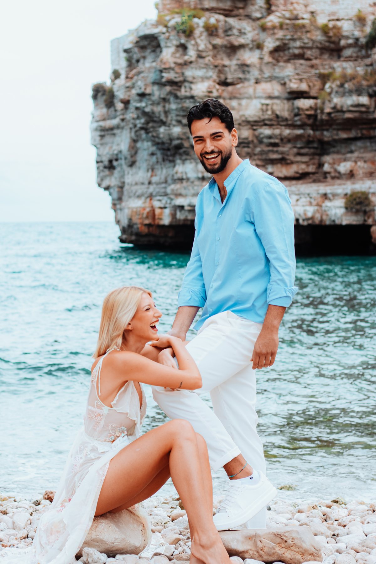 Em Polignano a Mare, esse casal viveu um pré-wedding cheio de vida e de significado. Entre o azul do mar, os gestos espontâneos e a alegria que transbordava, cada instante se transformou em memória eterna.