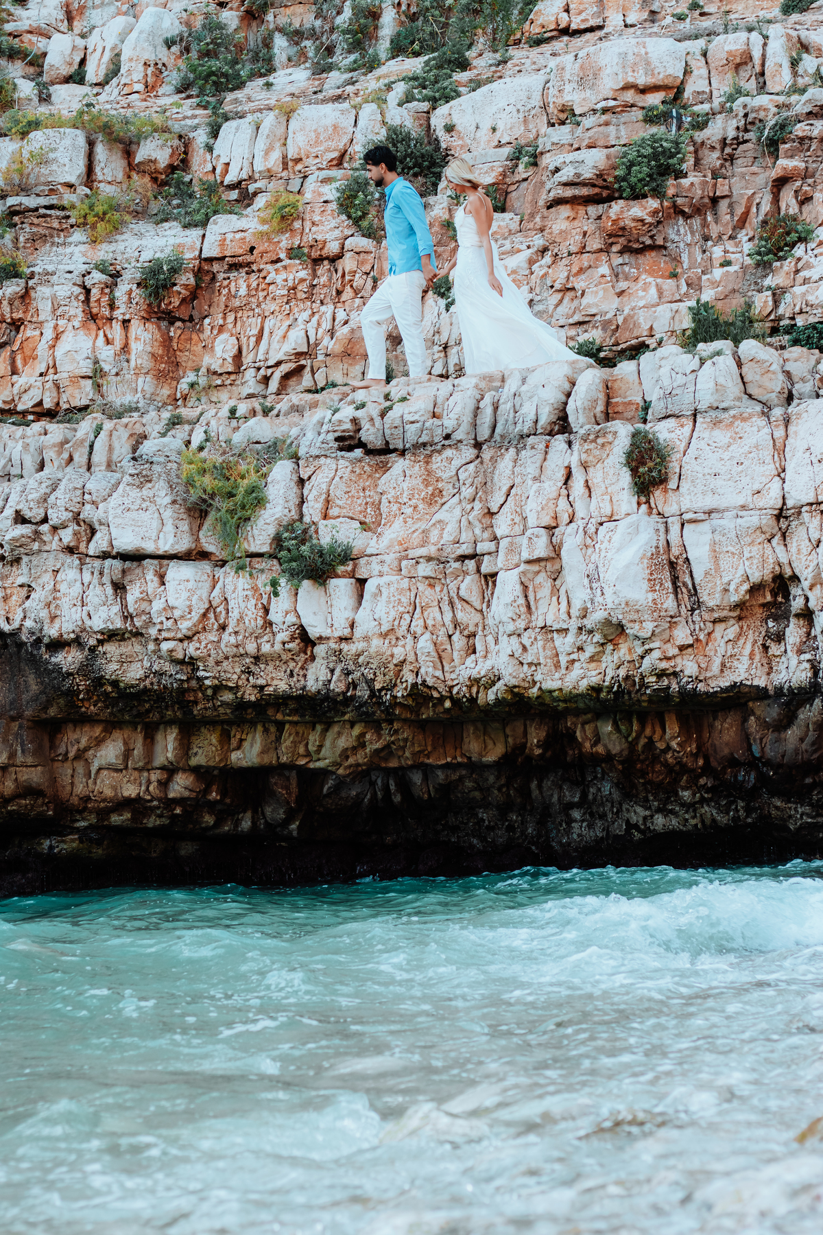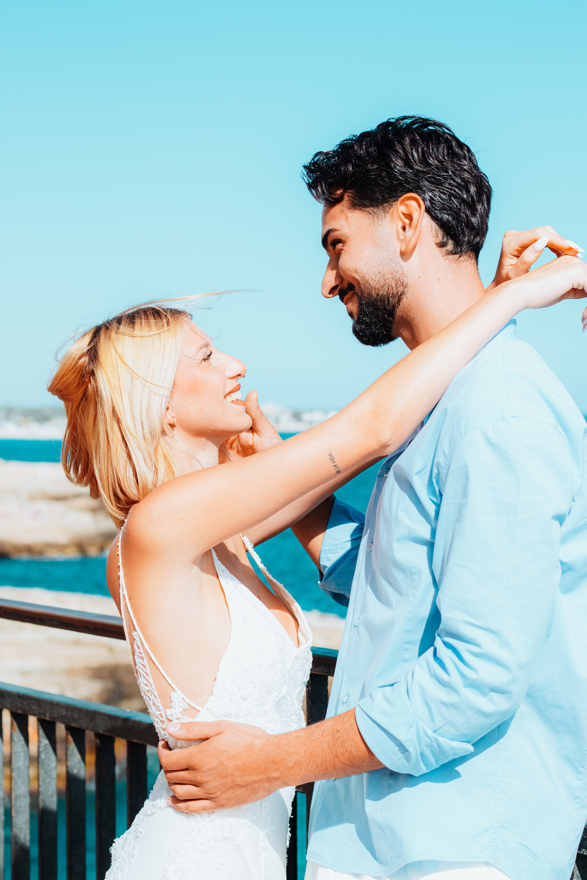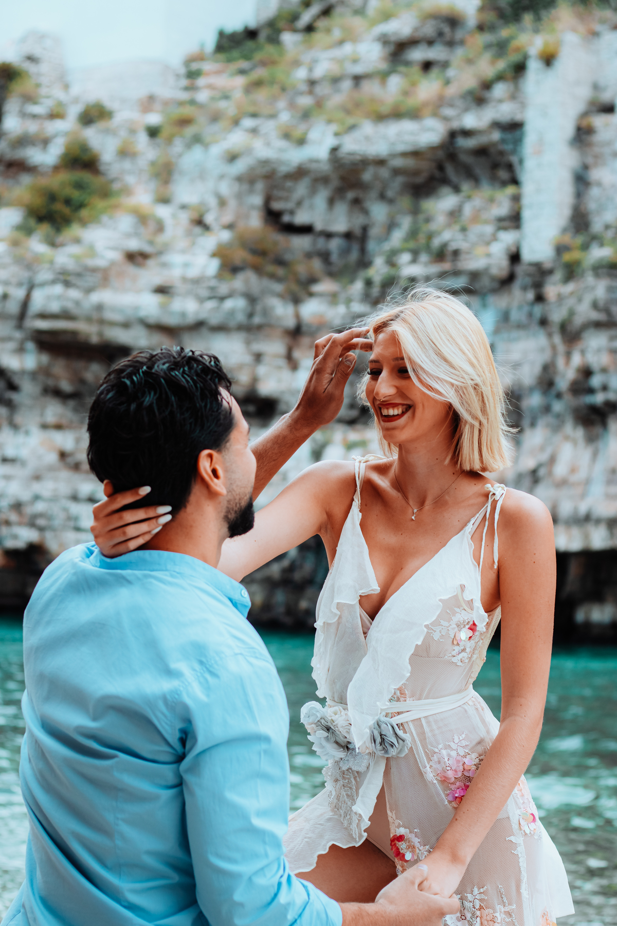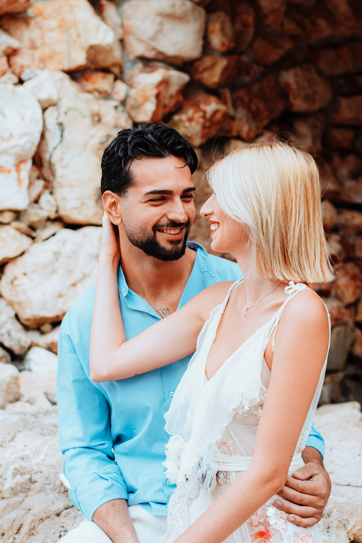 Em Polignano a Mare, esse casal viveu um pré-wedding cheio de vida e de significado. Entre o azul do mar, os gestos espontâneos e a alegria que transbordava, cada instante se transformou em memória eterna.