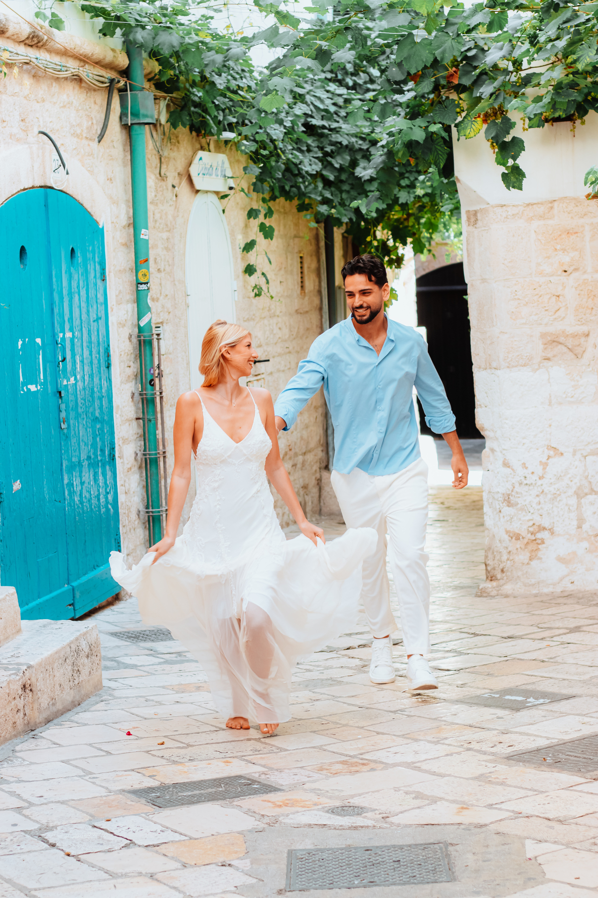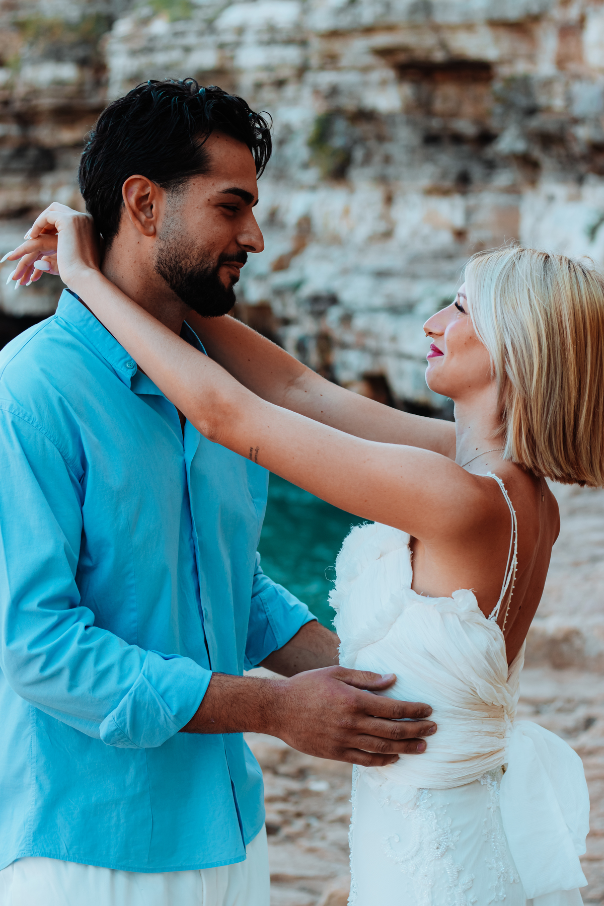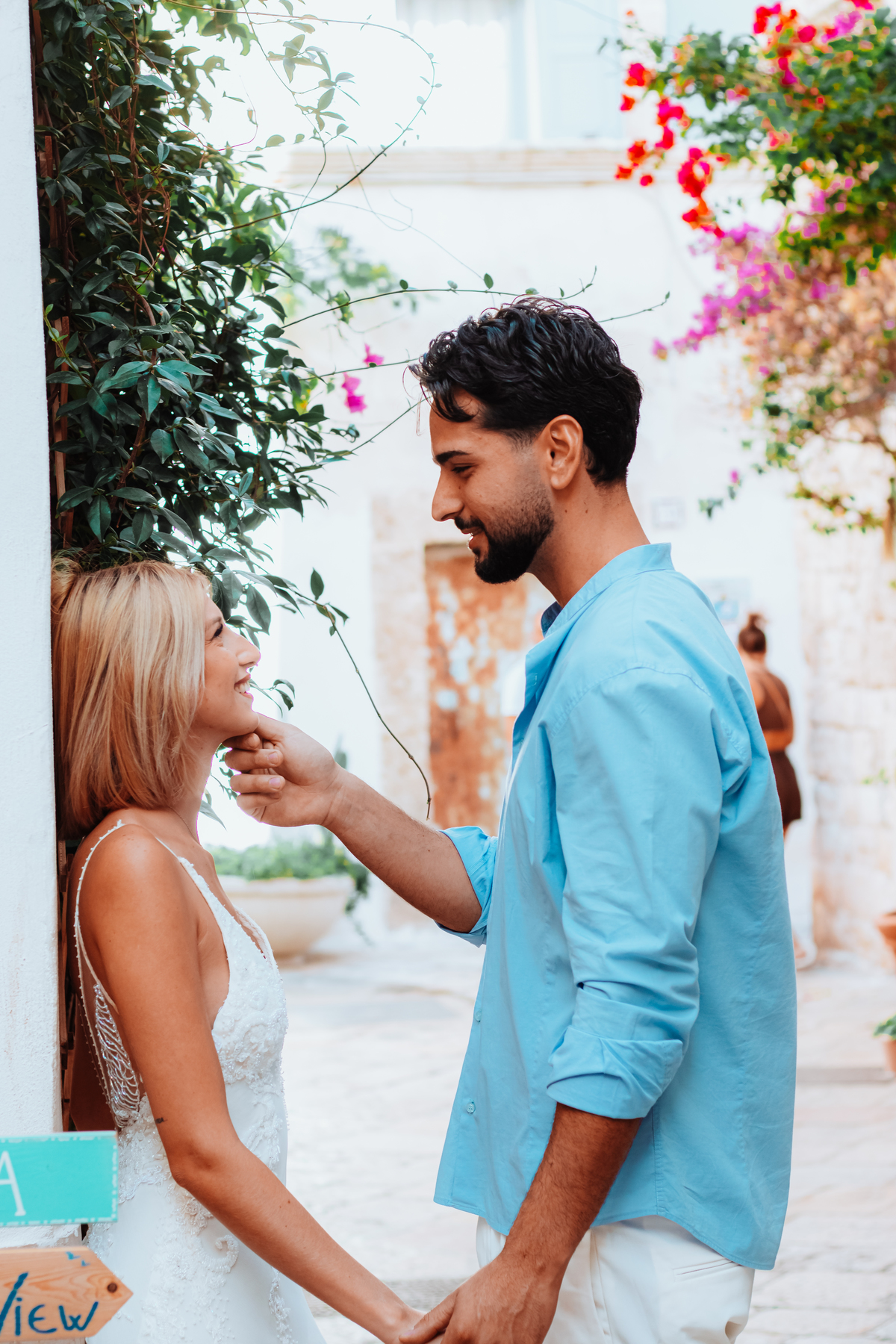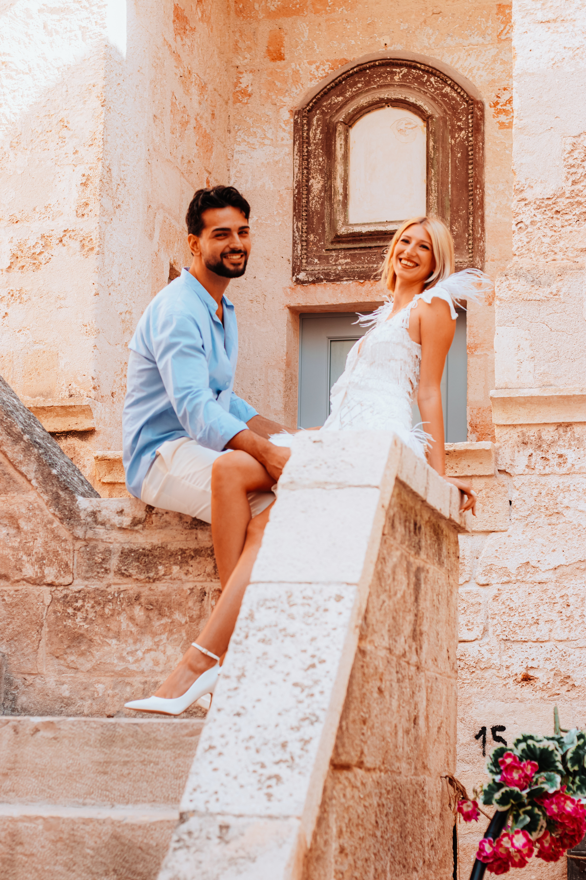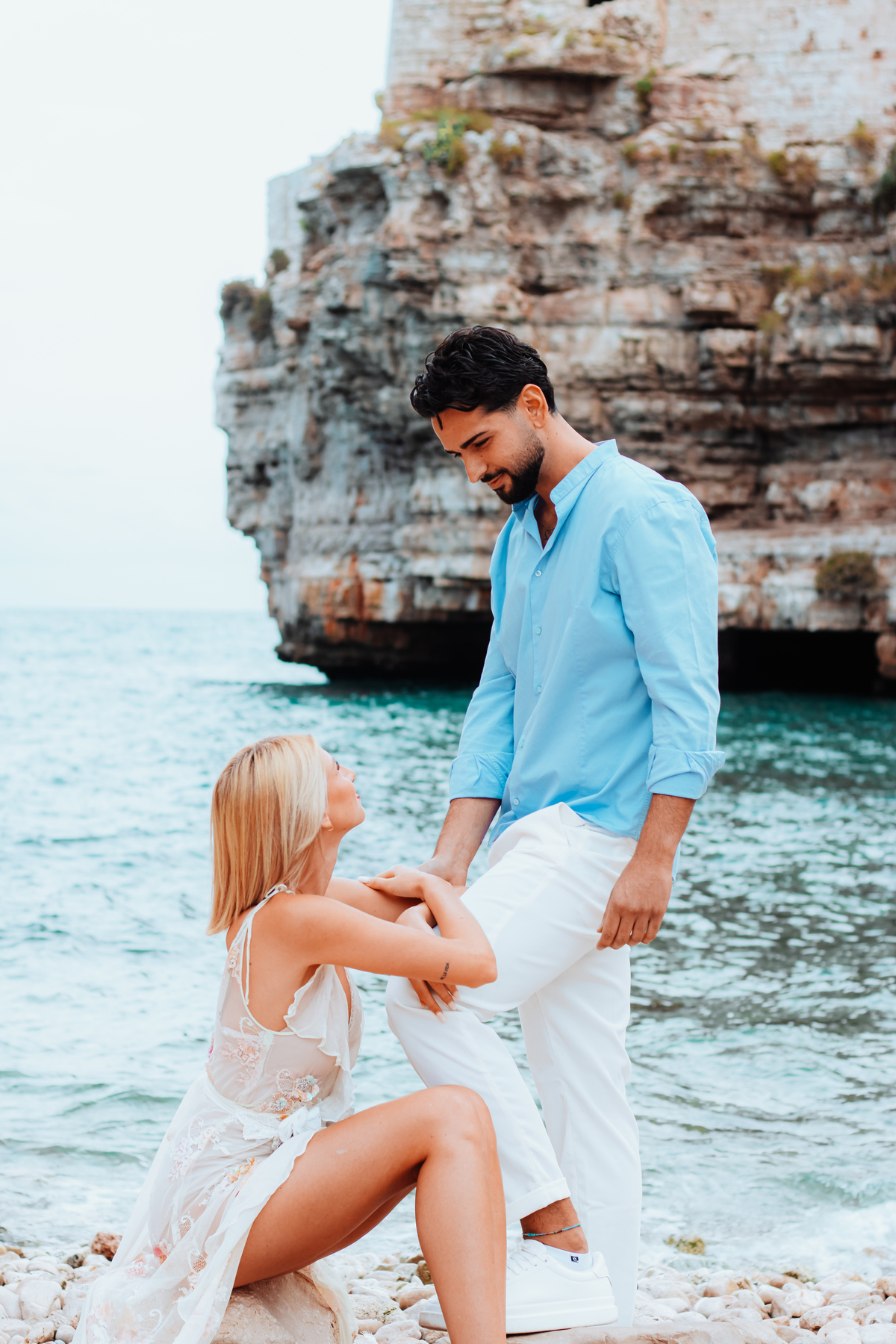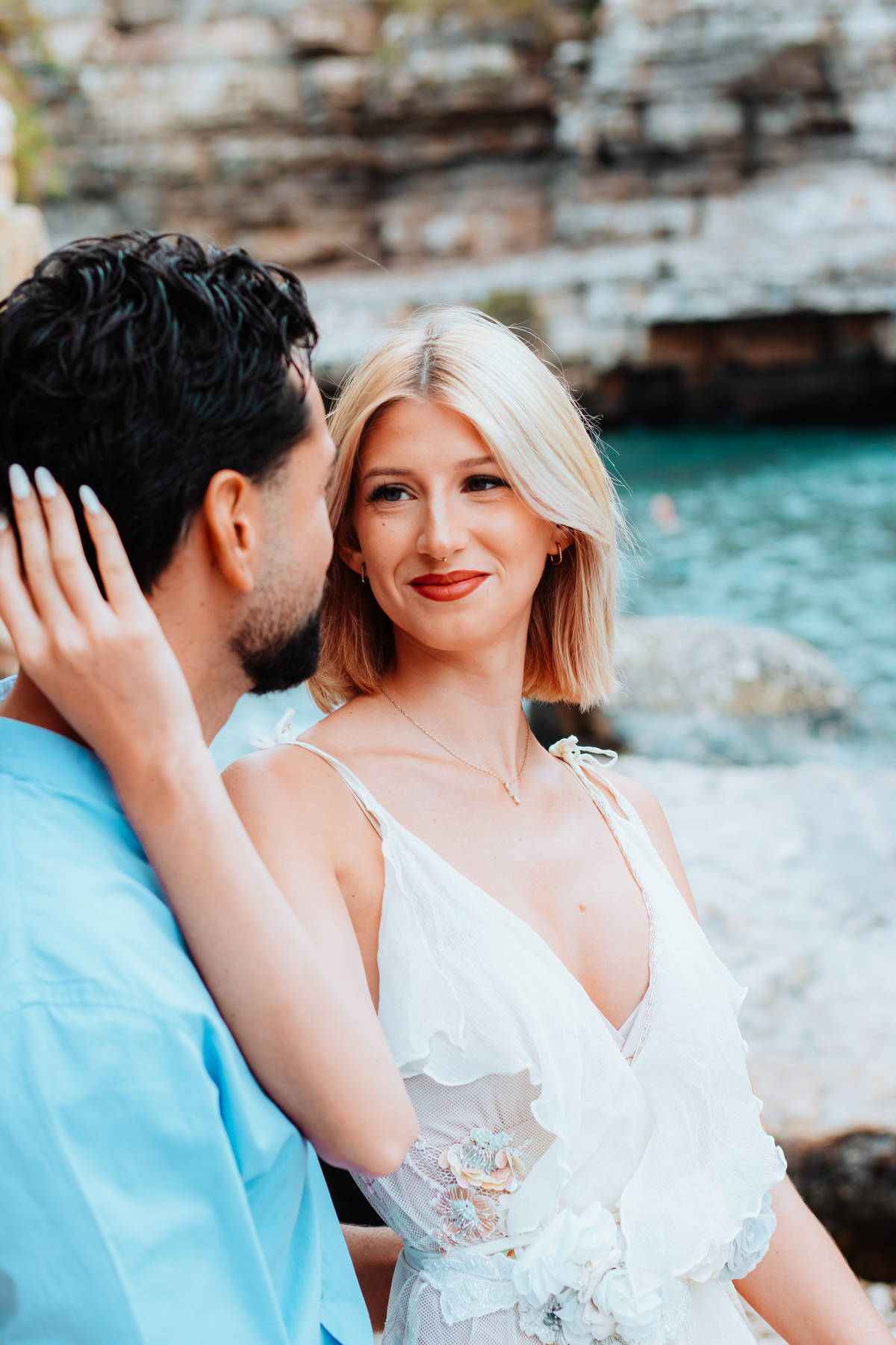 A Polignano a Mare, questa coppia ha vissuto un pre-wedding pieno di vita e significato. Tra l’azzurro del mare, i gesti spontanei e la gioia che traboccava, ogni istante si è trasformato in un ricordo eterno.