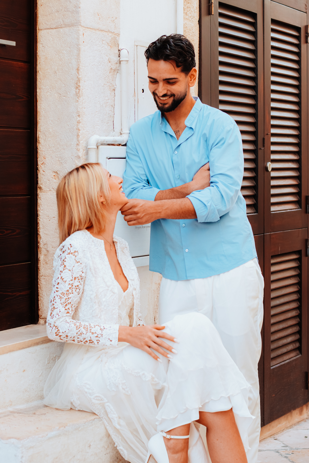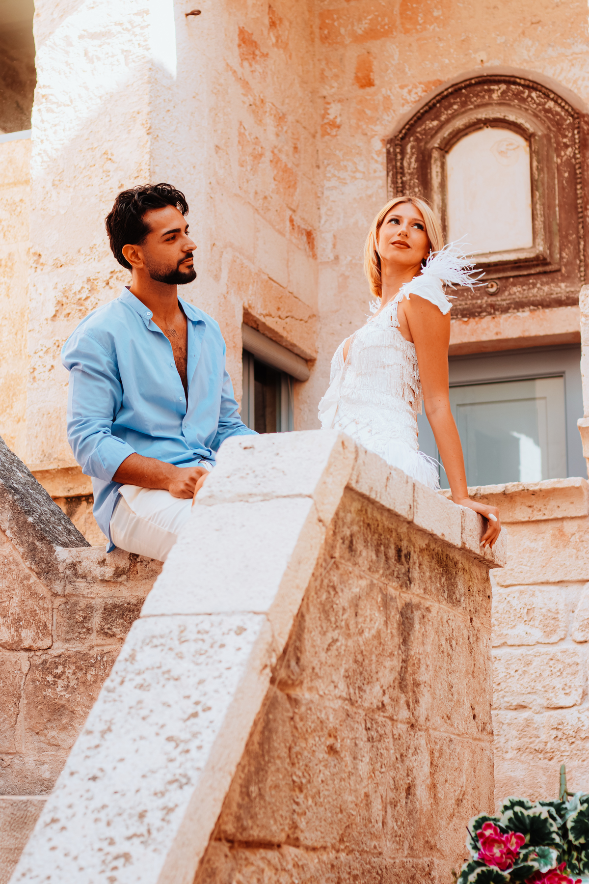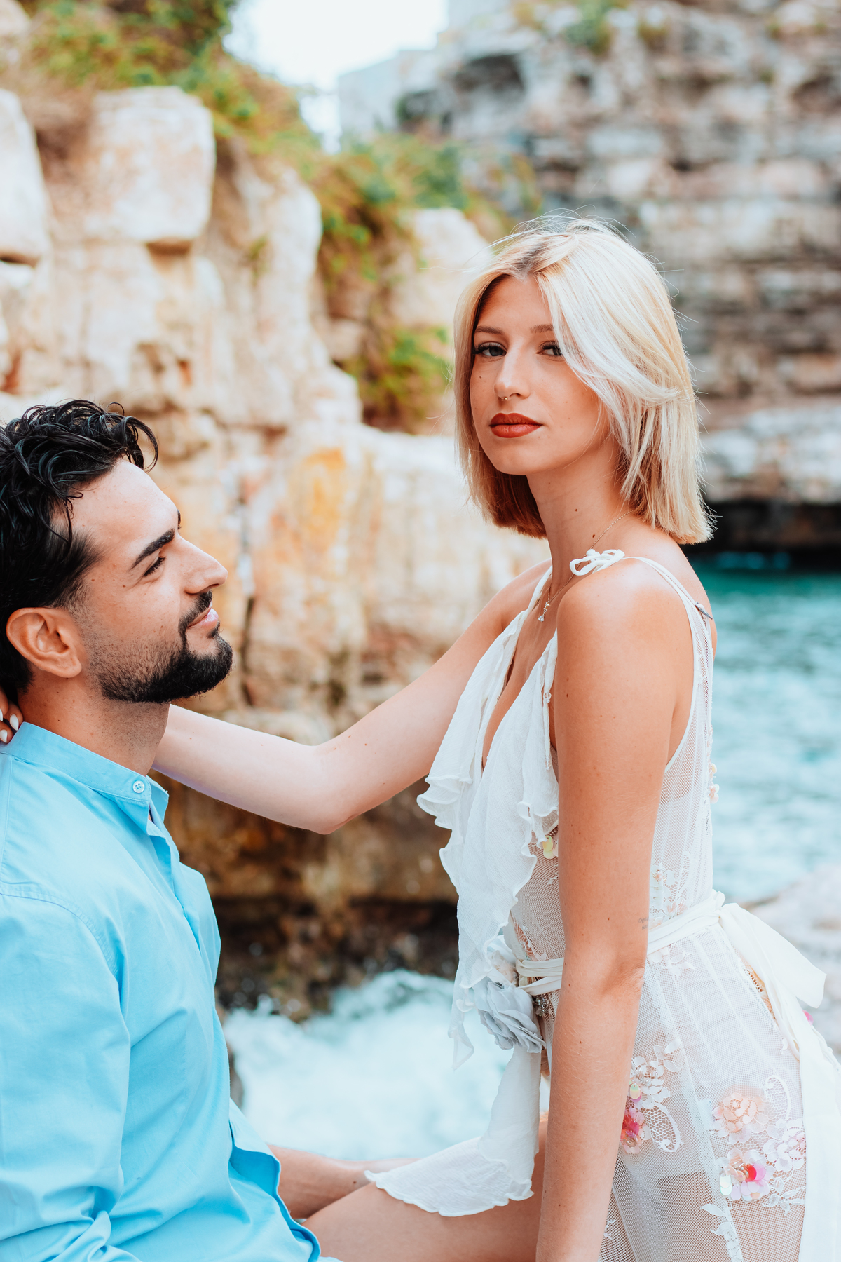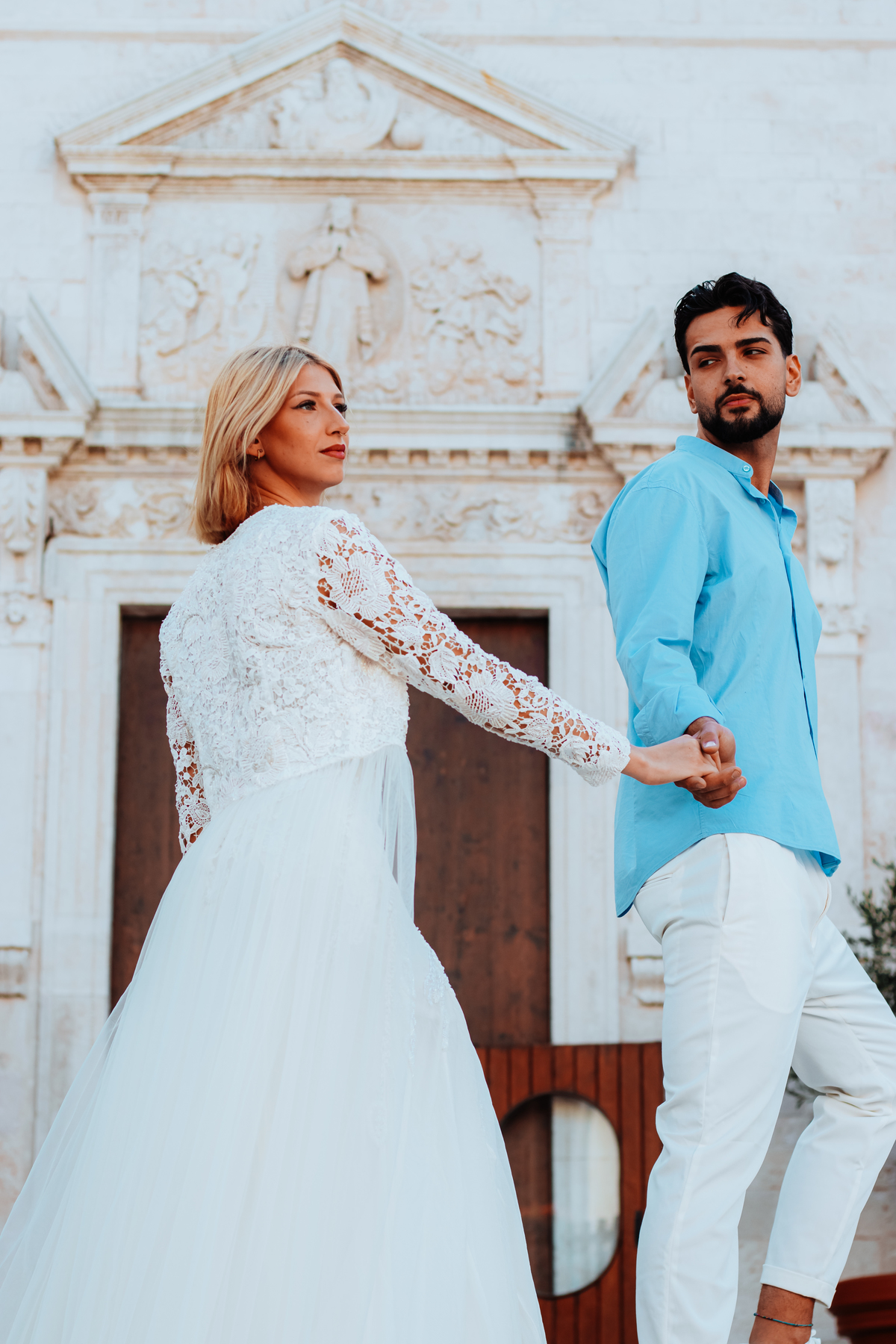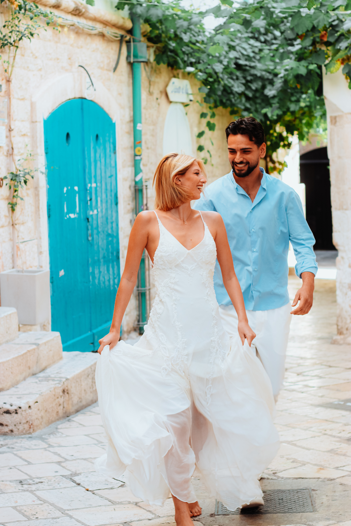 A Polignano a Mare, questa coppia ha vissuto un pre-wedding pieno di vita e significato. Tra l’azzurro del mare, i gesti spontanei e la gioia che traboccava, ogni istante si è trasformato in un ricordo eterno.