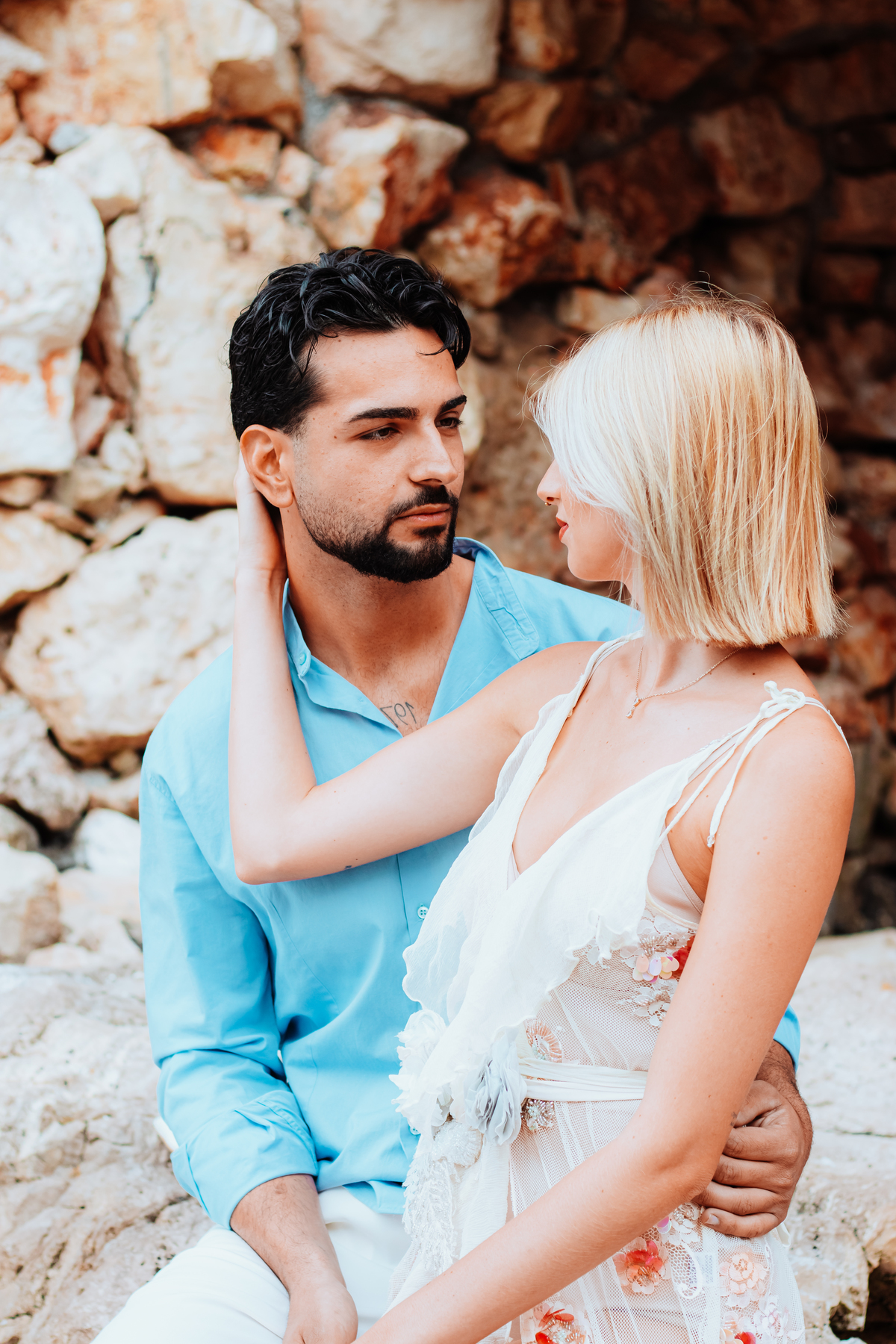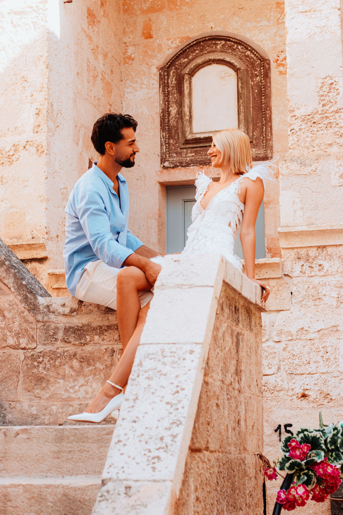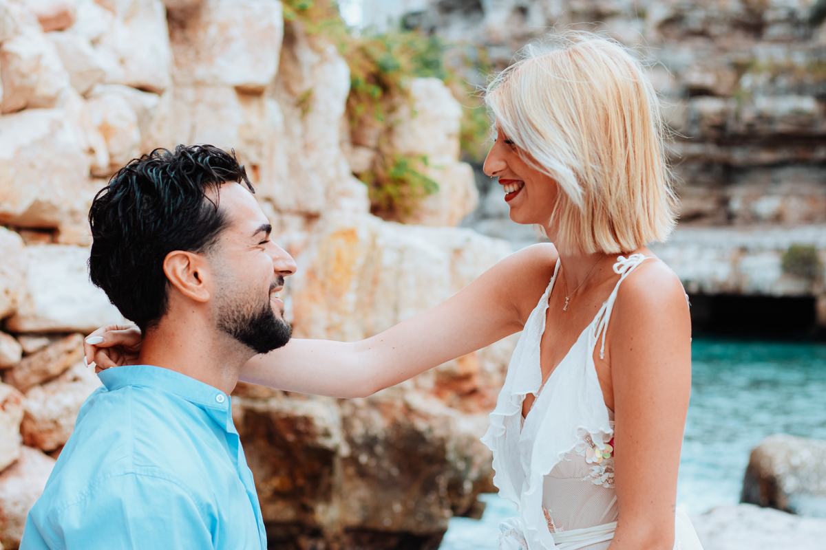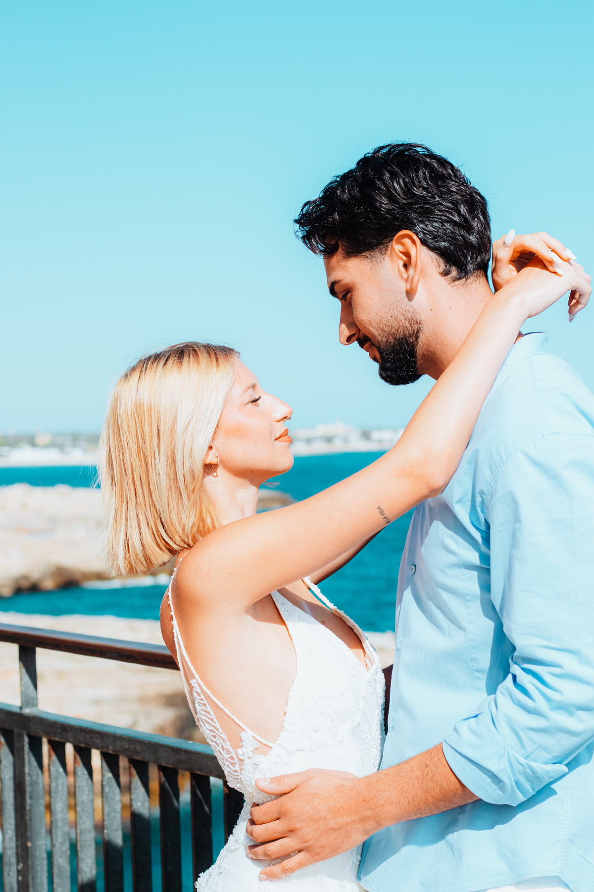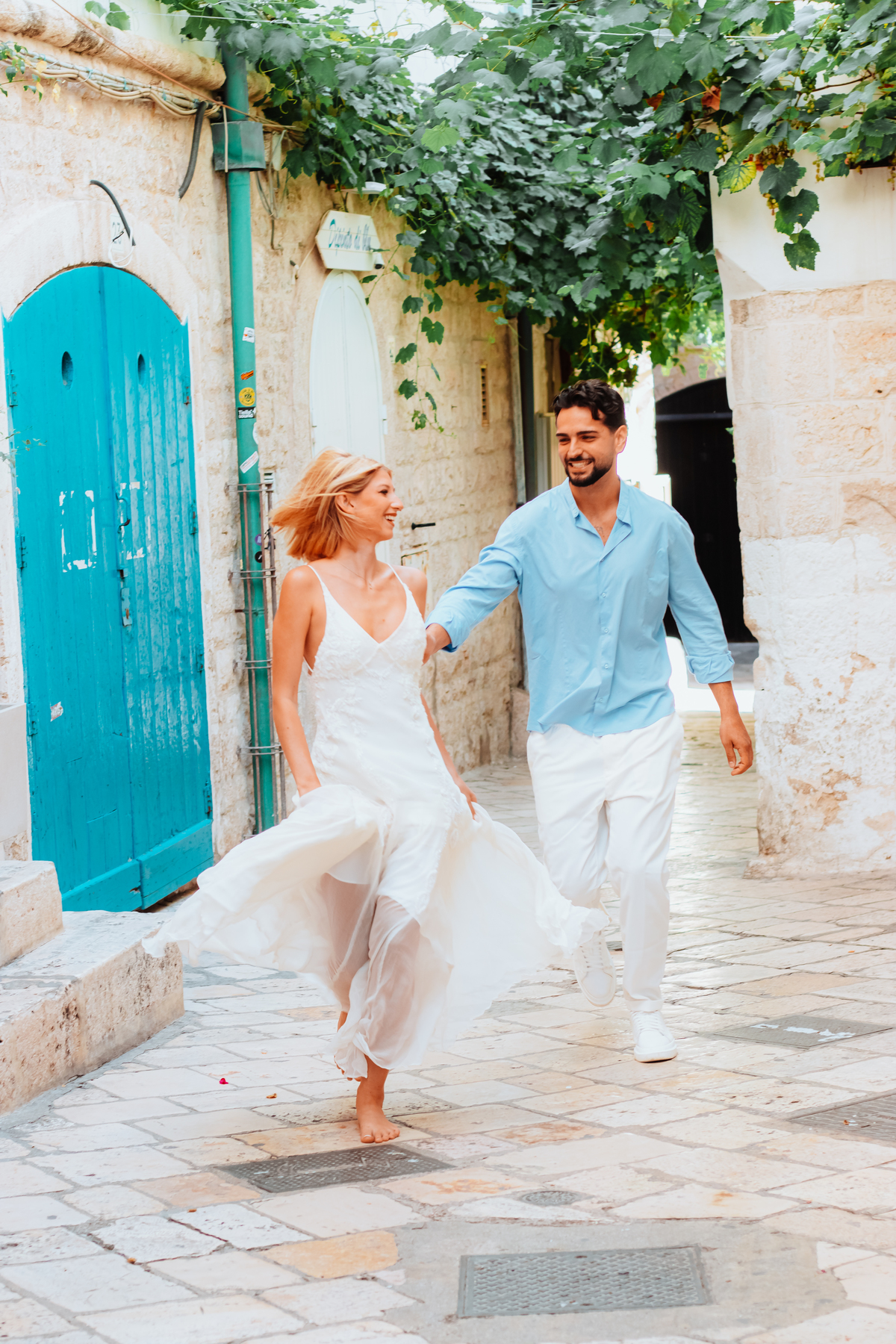 A Polignano a Mare, questa coppia ha vissuto un pre-wedding pieno di vita e significato. Tra l’azzurro del mare, i gesti spontanei e la gioia che traboccava, ogni istante si è trasformato in un ricordo eterno.