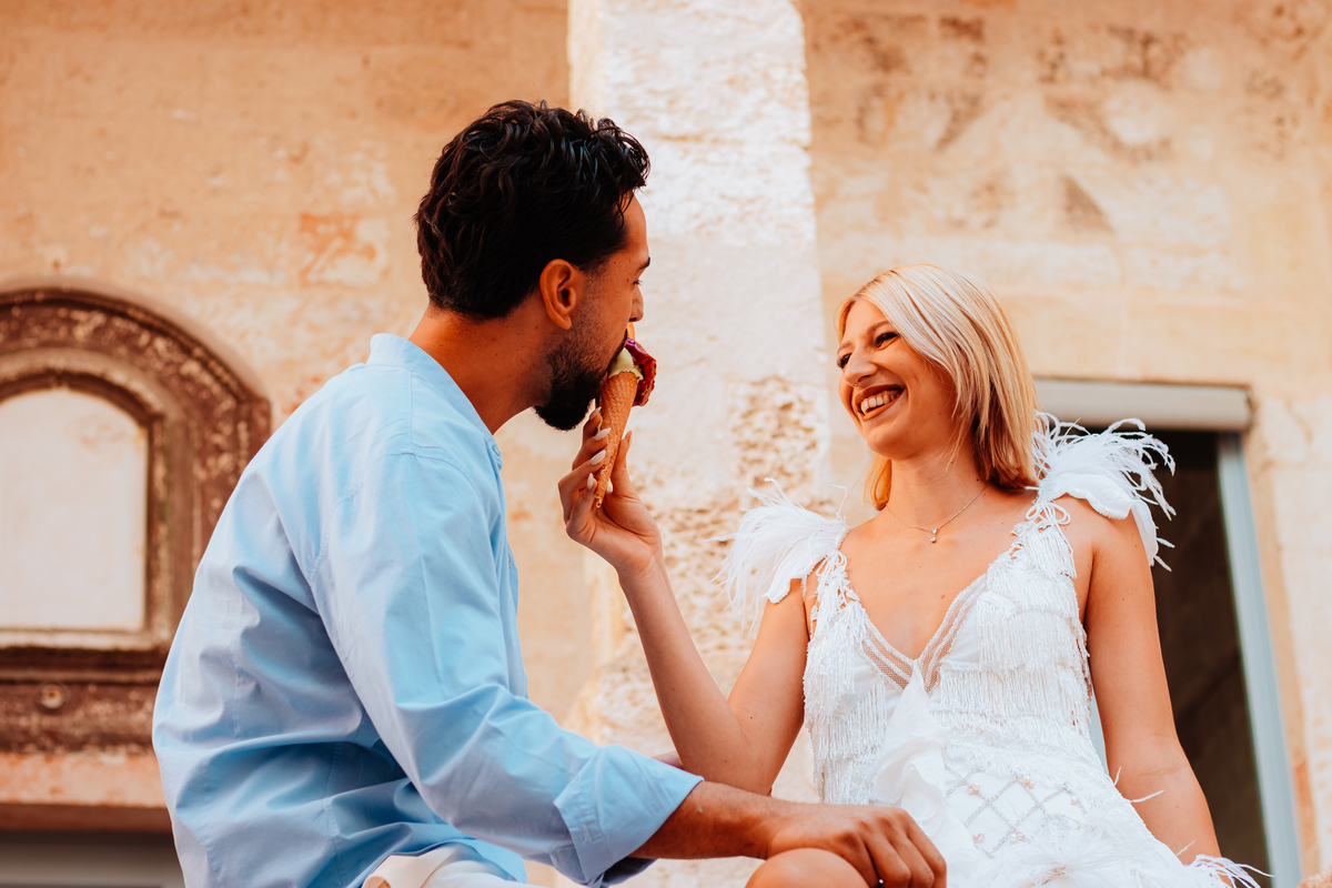 Di un brindisi condiviso, di un gelato diviso, di una risata che riecheggia tra le stradine di pietra bianca del sud Italia.